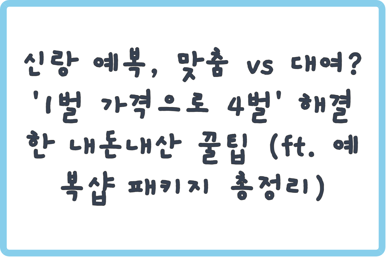 저희 부부 역시 이 딜레마에 빠져 한참을 고민했습니다. 평생 입을 한 벌을 맞추자니 100~200만원은 훌쩍 넘어가고, 스튜디오 촬영용 정장과 본식 턱시도를 따로 대여하는 비용도 만만치 않았죠.
