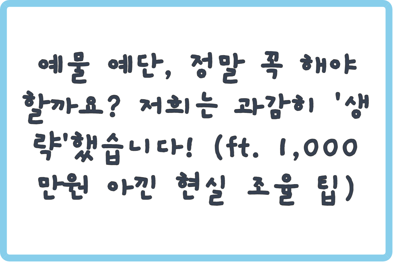 • 3단계: '대안'을 함께 제시하기 (핵심!) 그냥 '생략'만 말하면 부모님 입장에서는 서운하실 수 있습니다. 저희가 사용했던 방법은 바로 '합리적인 대안'을 제시하는 것이었습니다.